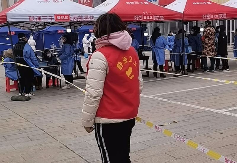 天津市瑞豐達金屬制品有限公司領導王總第一時間組織隊伍來到核酸檢測點,與街道社區工作人員一起在現場協助引導社區群眾有序排隊、協助注冊采樣登記碼、核驗登記碼等工作,以實際行動切實協助維護安全高效的核酸檢測秩序,為疫情防控提供堅強保障。